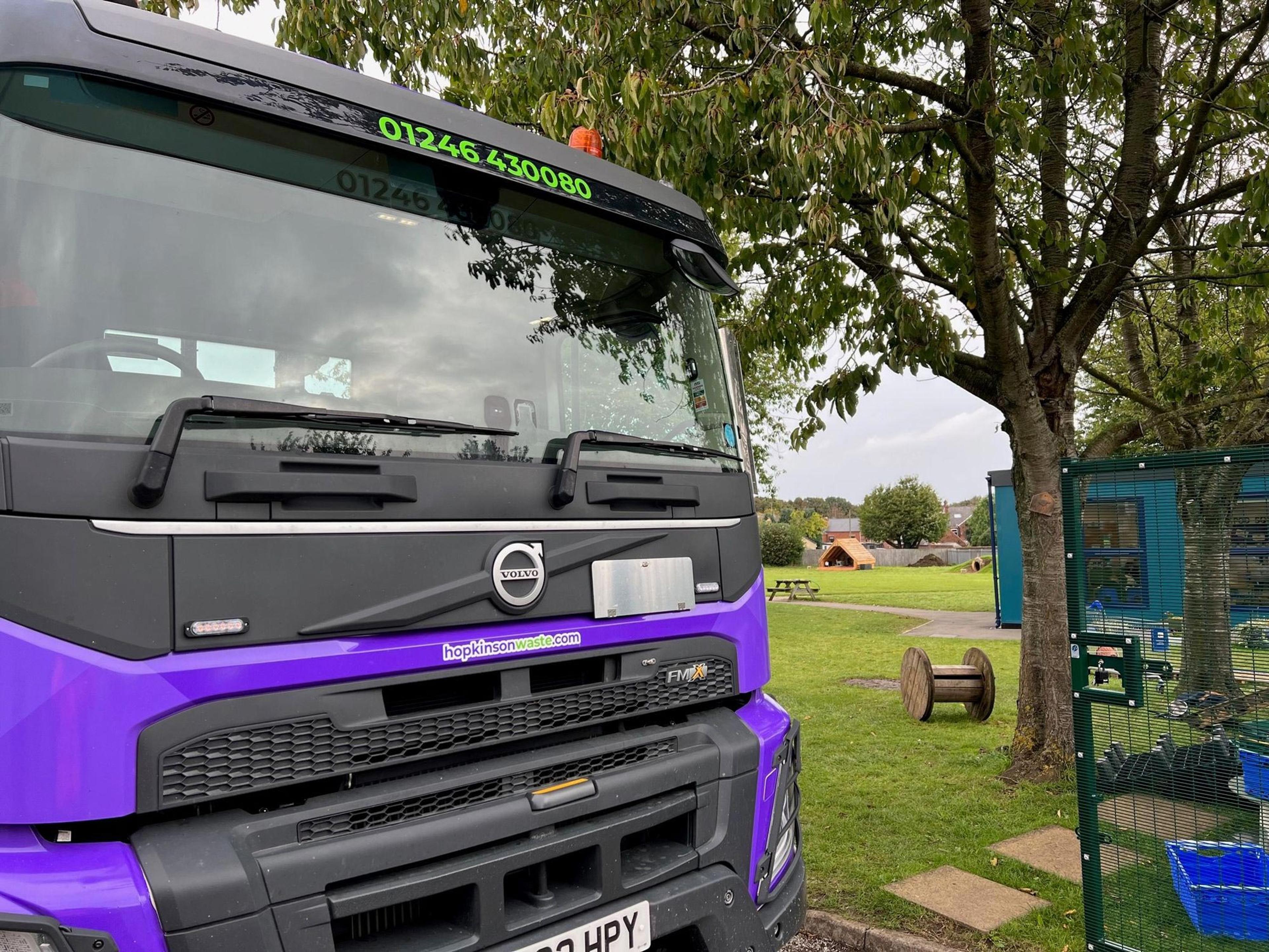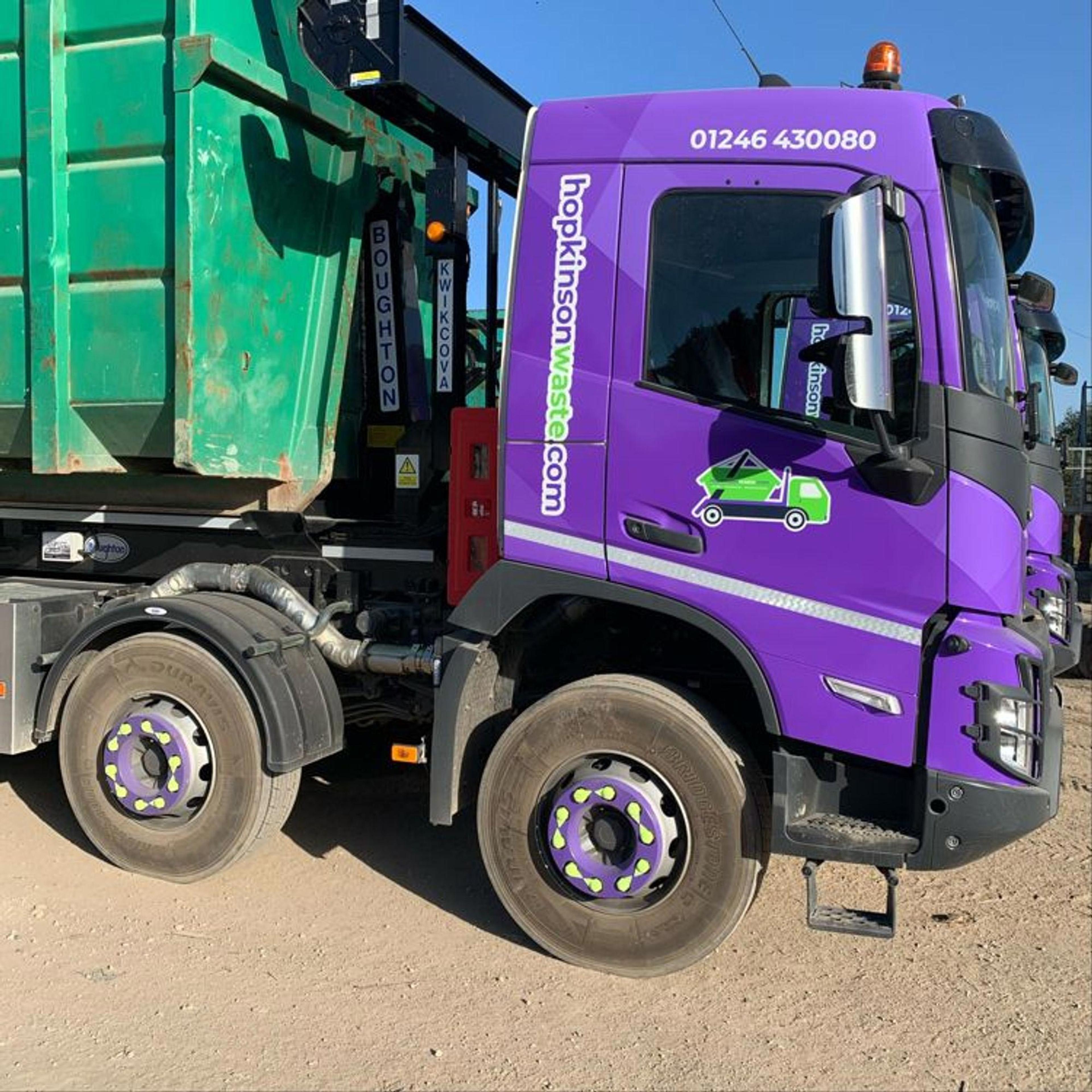 So, we decided to wrap some of our new trucks in the bold and eye-catching signature purple of Hopkinson Waste. This choice connects our trucks with our brand, and makes them recognisable.